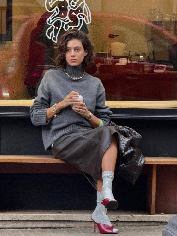 除了色彩与复古,karishkabalan 的穿搭更藏着满满的松弛感哲学,完美适配春日的各种场景。无论是街头漫步时的皮衣高领衫,还是咖啡馆里的灰色毛衣皮裙,亦或是酒吧里的工装夹克亮片裙,她总能根据场景切换风格,却始终保持着松弛自在的状态。她擅长用叠穿打造层次,用配饰点睛造型,一条红色针织披肩、一双复古乐福鞋、一个复古手提包,都能让基础款瞬间升级,同时又不会显得刻意用力。她的穿搭没有固定公式,却处处透着巧思,无论是通勤、约会还是出游,都能找到可以直接抄作业的范本,让普通人也能轻松 get 春日时髦感,真正做到了 “好看又好穿”。