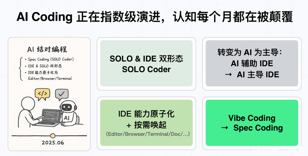 不过在「SOLO开发SOLO」的实操里,来自TRAE团队的复盘相对更为现实一些,认为当下还是处在量变积累阶段,尚未突破质变,个人的速度是提升了,但组织的速度很难同比提升。